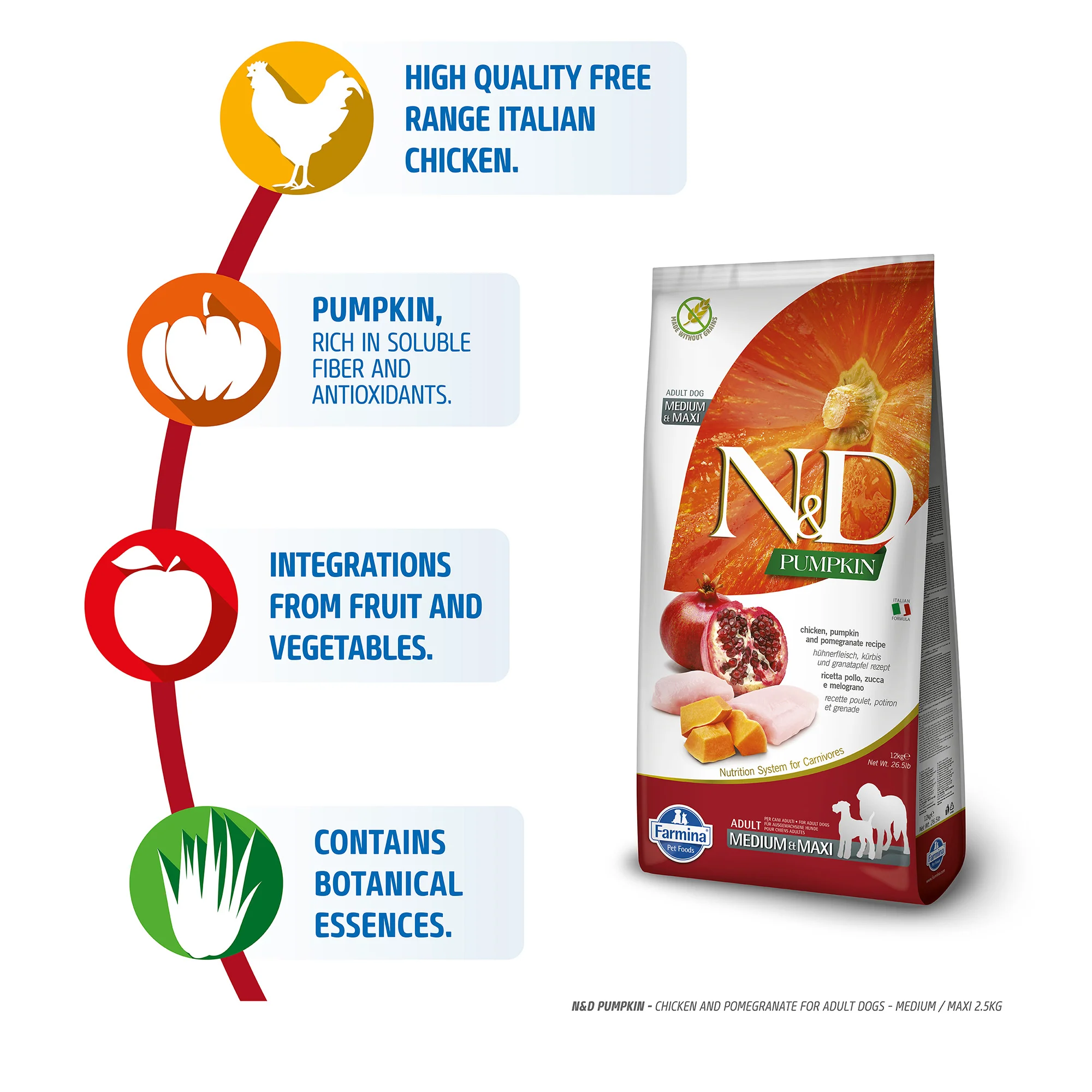 Farmina N&D Pumpkin Chicken & Pomegranate Grain Free Medium & Maxi Breed Dry Adult Dog Food