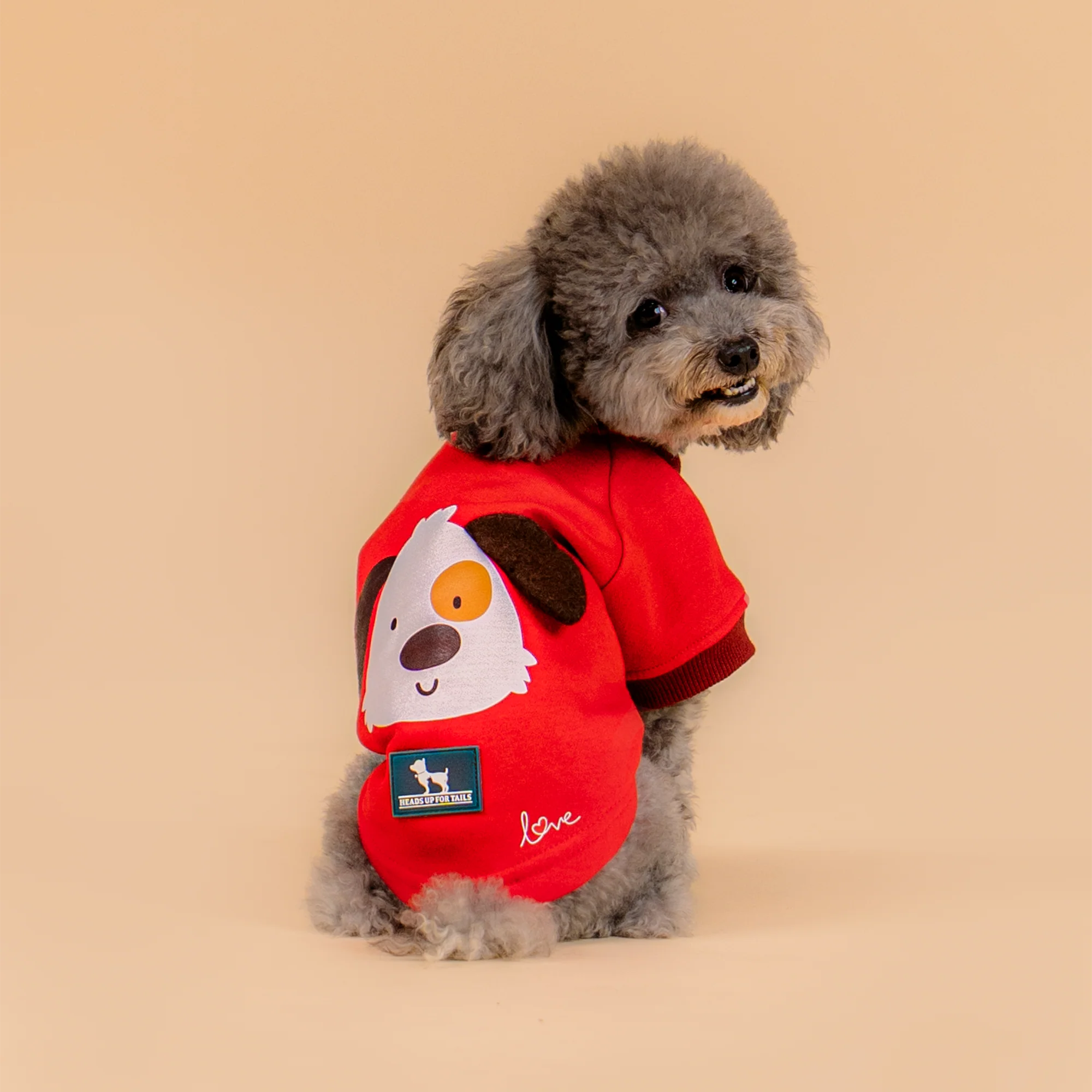 The HUFT Woof Squad Sweatshirt is crafted from soft fleece tha's gentle on the skin, cosy for winter days, yet light enough for playtime runs! In a cheerful brick red, it features a playful dog face print on the back, complete with 3D ear details for an extra dose of fun. A contrasting ribbed neck, sleeves, and hem add a sporty touch, while our signature motif saying "LOVE" at the back hem peeks out as they walk - the kind of sweet surprise that makes everyone smile. With its easy-pullover style and lightweight, non-creasing print, this sweatshirt is perfect for keeping your dog comfy at home, on walks, or while out and about with their woof squad.