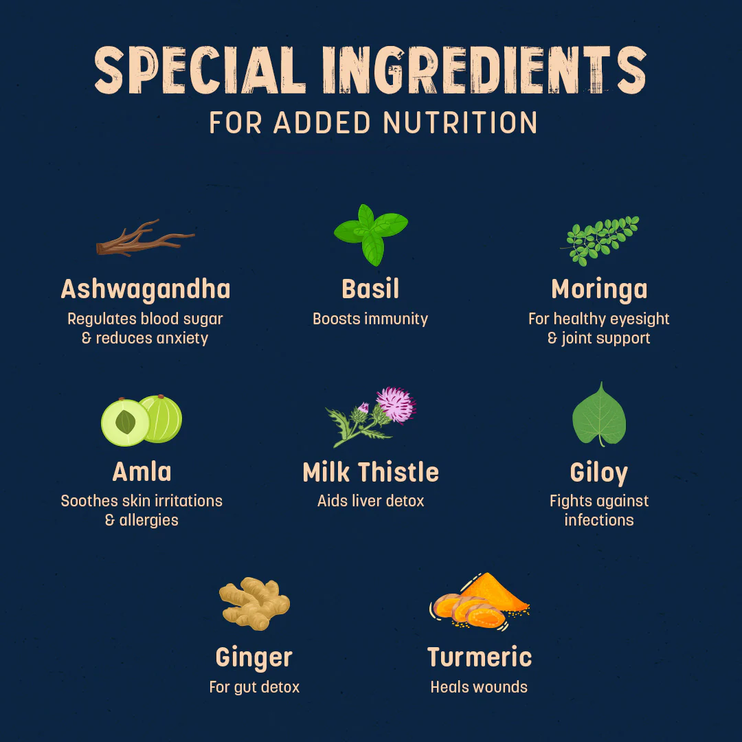- Each ingredient is hand-picked and slow-cooked in small batches to retain maximum nutrients. Meals are packed in retort packaging, ensuring freshness without preservatives or stabilisers. Simply cut, open, and serve for a convenient, nutritious meal your pet can enjoy.